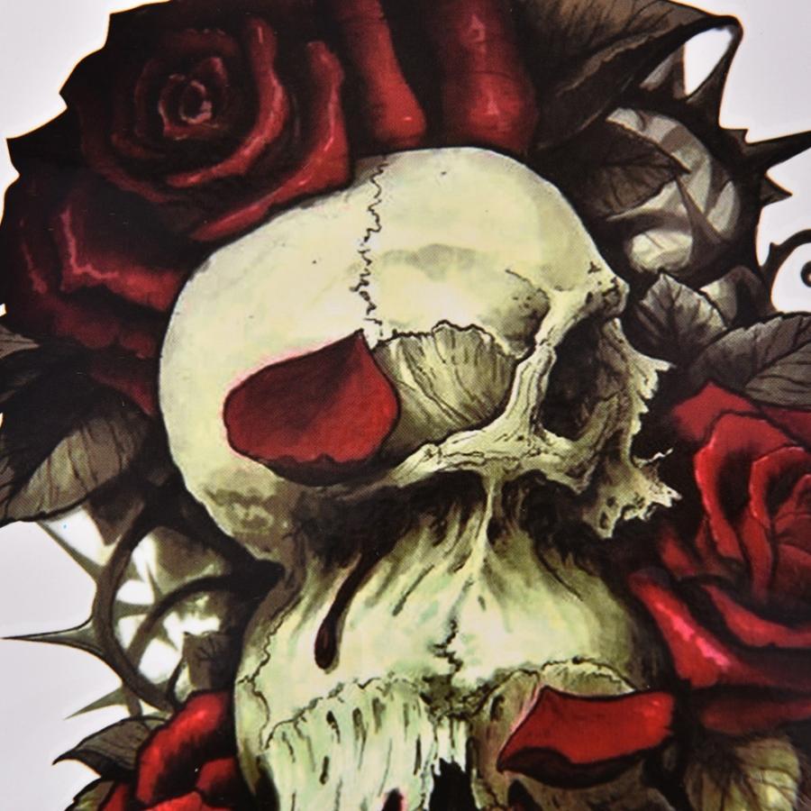 タトゥーシール メンズ リアル 防水 スカル 髑髏 ドクロ 薔薇 花 赤い