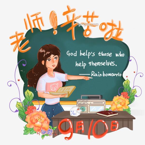 原创商用元素手绘园丁教师节小清新插画英语老师png搜索网 精选免抠