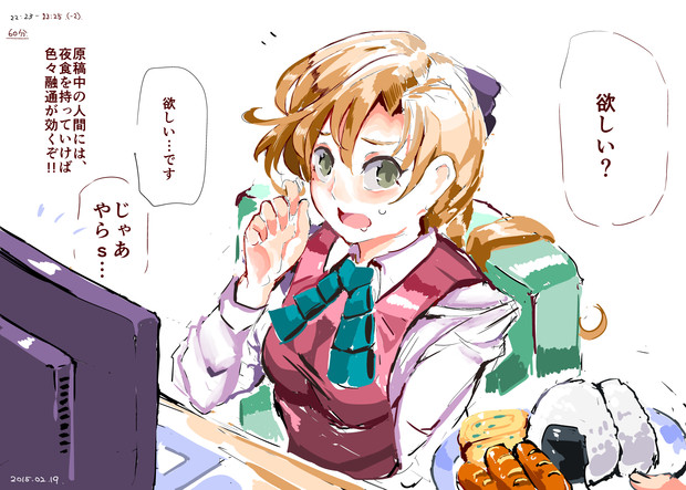 夜食と秋雲 にゅう さんのイラスト ニコニコ静画 イラスト